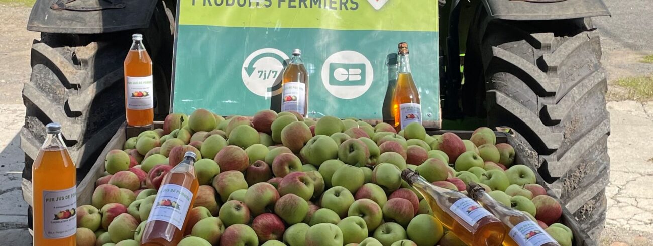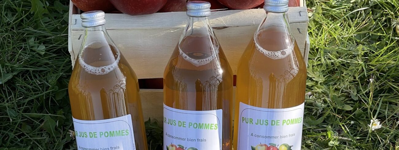 Cueillette de pommes et de poires,  vente de jus de pommes et de poires, pétillant